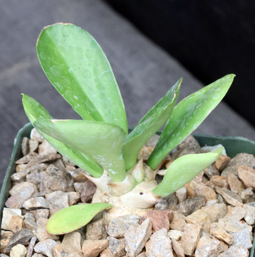 This species, from tropical West Africa, has thick cylindrical pale gray stems, up to 6-feet tall, bearing tuft of recurved spathulate leaves at the tips. This species is similar to E. unispina and E. venenifica. Rare and seldom offered, we have seedlings of this species in 4-inch pots.