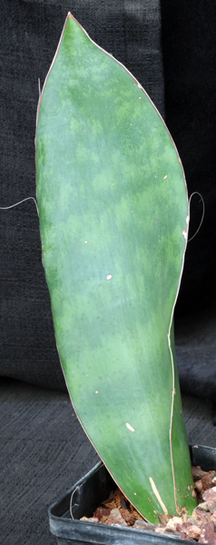 These plants have be an undescribed species propagated from material collected east of Mbaga Mountain in central Tanzania (ES 1847). The broad leaves look like many other species, with their patterning and color, and are mostly smooth on both sides. However, the closest species in terms of leaf shape is Sansevieria elliptica, which is mostly known from Kenya and has rough