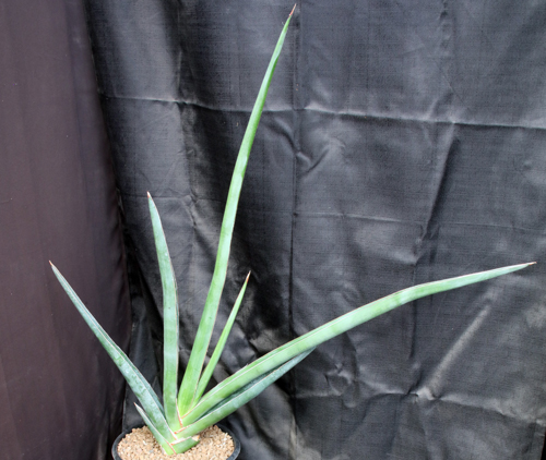 This recently described species, formerly known as S. ehrenbergii, is the large, arborescent-sized species from coastal east Kenya. The leaves are green, channeled, and stiff, and they tend to be held in a distichous rosette like an oversized form of S. powellii. These plants are rooted offsets in 3-gallon pots.