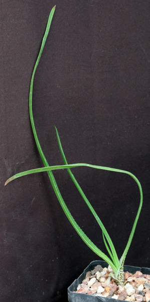 This large grass Aloe, from Swaziland and the northern provinces of South Africa, has leaves up to 2-feet long with v-shaped cross section. The flowers are pale red at base to yellow at tip. This species is hardy outside in Tucson. We offering seedlings of this species in 4-inch pots.