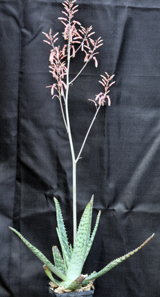 Widely distributed in southern Africa, from Namibia across to Mozambique, this maculate Aloe is distinguished by the banding on the leaves that earns it its species epithet. These plants are from material originally collected in Kaokoland, northern Namibia. The plants form clumps that are reasonably controlled in cultivation. The panicles of red flowers are produced in the early fall to early winter. These plants are seedlings in 5-inch pots.