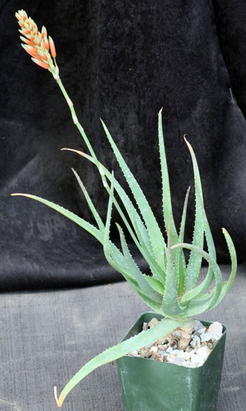 This is a nice hybrids around from Kelly Griffin. Unlike similar cultivars, it has a frilly margin of soft "spines." The raised bumps on the leaves, combined with the purple-green cast, make for a highly attractive, compact hybrid. These plants are rooted offsets in 4-inch pots.