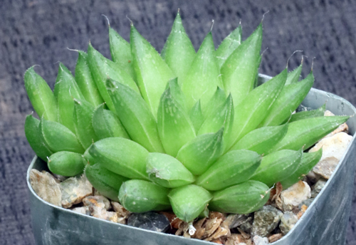 We offer these plants (GM 420), originally from southwest-facing slopes above Waterdown Dam in the Eastern Cape Province of South Africa. This soft-bodied Haworthia is quite a nice variant on the regular H. cymbiformis. These plants are rooted offsets in 2-inch pots.