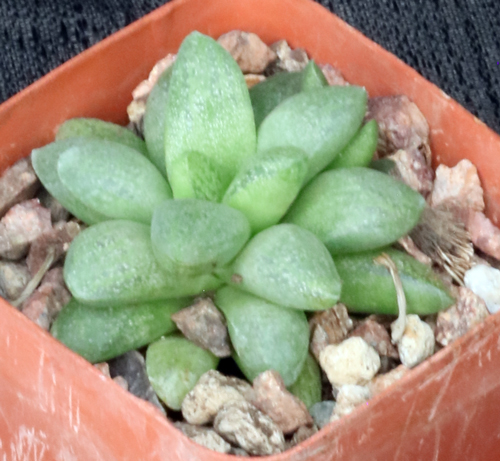 These plants come from several sources, although this species has a narrow distribution in the Western Cape Province. We have seen this species in habitat near the Goritz River (VDV 172). Our offering tends to clump profusely and has rounded leaf tips. The color is light green with red mottling. These plants are rooted offsets in 3-inch pots.