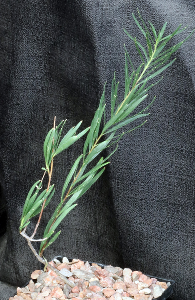 This species is a cultivar of a common species of the Sonoran Desert in Arizona and California. It is a deciduous tree with smooth gray bark, spineless branches, and lanceolate leaves. The flowers are pink and white and showy. These plants are seedlings in 5-inch pots.