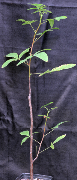 This species grows on the west coast of the Pacific Ocean from southern Jalisco, Mexico, to Guatemala. It has a wide range in habitats, from sea level to pine forests, and therefore could be quite adaptable to many cultivation conditions. The gray bark does not exfoliate, and the leaflets occur in threes and have serrated margins. These plants are rooted cuttings in one-gallon pots.