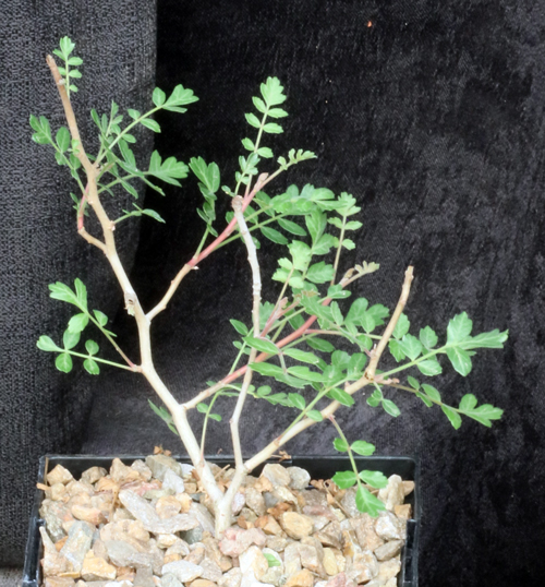 This plant, commonly known as the elephant tree (or torote blanco) of Baja California, is a member of the Anacardiaceae, even if it looks like it belongs in the Burseraceae. The leaves are pinnately divided and the trunk has white, exfoliating bark. This slow-growing species is excellent for bonsai. It is a winter grower, so beware and give it a summer rest. We are offering seedlings of this desirable species in 5-inch pots and have bases upwards of 1 inch in diameter.