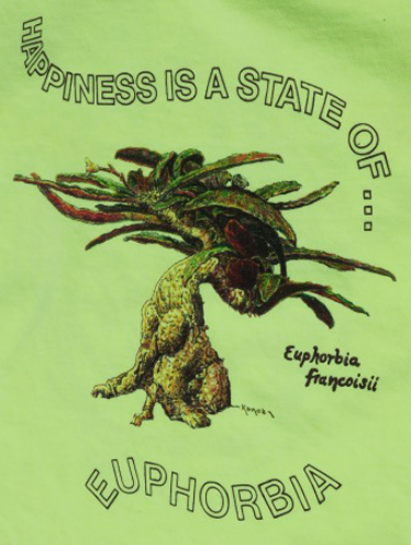 Our high-quality T-shirts (Comfort Color Cotton T) have original artwork of Euphorbia francoisii on the front. The color of these shirts is Neon Yellow.