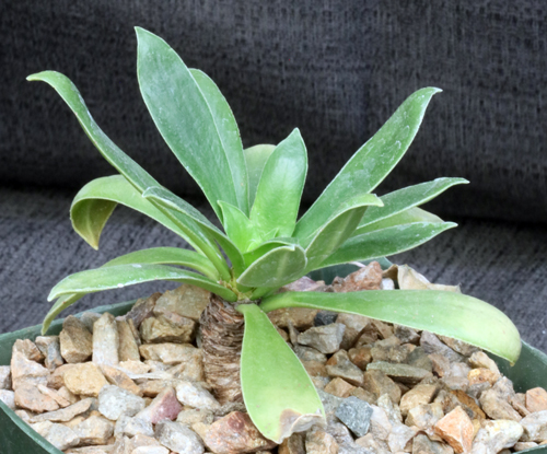 Pilea fairchildiana, once called Sarcopilea domingensis, is a succulent plant from the Constanza Mountains of the Dominican Republic. A small shrub, it produces leathery green leaves up to 6 inches long and in rosettes at the ends of stems. It produces umbels of pinkish flowers with white petals. These plants are rooted cuttings in 5-inch pots.
