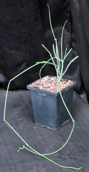 This viney species is from Madagascar, where it is widely distributed in the arid and semiarid regions. Its original name was C. decaisineanum but we correct that here. The stems are light green in color and striate. The flowers are small and yellow. These plants are rooted cuttings in 5-inch pots.
