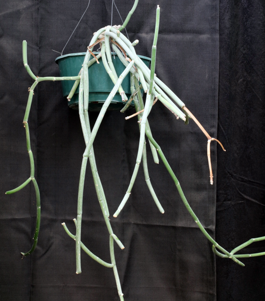 This species is widespread in Arabia and Africa, extending south to South Africa and eastward to Australia. This sprawling shrub eventually makes a main stem, but in the wild what you see is a great splay of succulent green stems. The flowers are star-shaped and yellow-green. Subspecies crassicaule, which has a type locality of Kasigau, Kenya (WY 1037), has larger stems than the typical species. These plants are rooted cuttings in 10-inch pots.