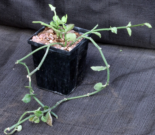 This species is from the Eastern Cape Province of South Africa. It has succulent leaves and stems, and the leaves have crenulate margins. This species makes an ideal hanging plant. The flowers are rather incredible and dominantly yellow in color. These plants are seedlings in 4-inch pots.