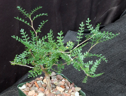 This highly desirable pachycaul is from Madagascar. Once thought to be a form of O. decaryi, it differs in its size – it is a dwarf species – and its trunk, which is gray and gnarled. The leaves are pinnatifid and similar to O. decaryi, but the twigs typically are strongly zigzagged. This is a classic bonzai species, since that type of growth is most similar to its largely soil free habitat. These plants are seedlings in 4-inch pots.