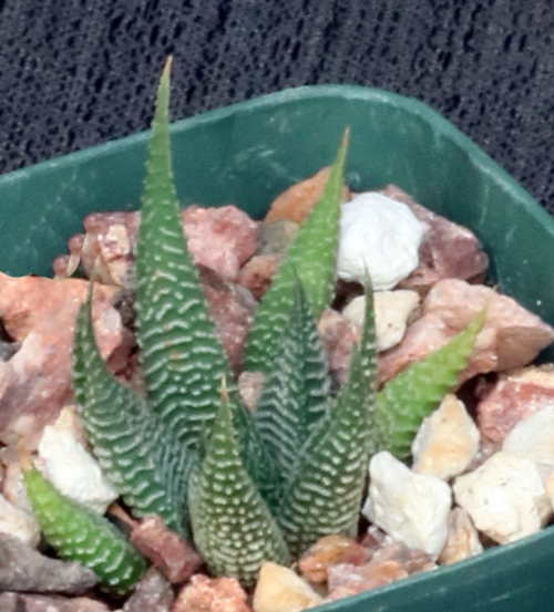 Haworthia limifolia is from northern KwaZulu-Natal Province of South Africa. We have two versions of this form, which is characterized by either abundant or sparse white tubercles on the leaves. This variety is significantly larger than the typical species. These plants are rooted offsets in 3-inch pots.