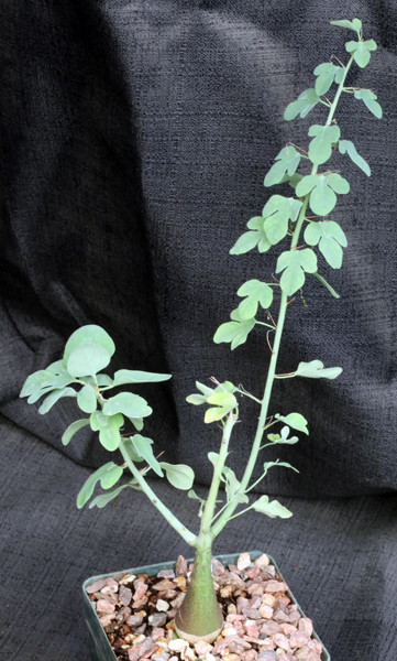 This fantastic caudiciform is from South Africa, Botswana, and Zimbabwe. The caudex is dark green, and the thin woody, spiny branches arise from the center of caudex. The plants are dioecious and the flowers are relatively large but not showy. The plants are seedlings in 5-inch pots.