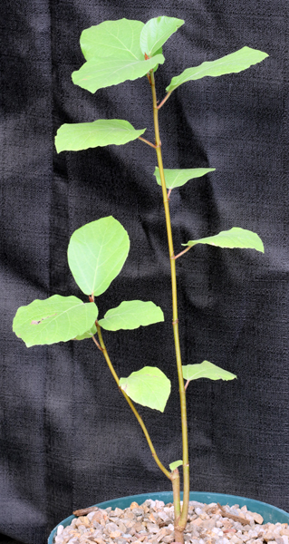 Known by the common name of African rock fig, this species is widespread in the summer rainfall regions of southern Africa. It has hairy leaves that are an olive green color. These plants are rooted cuttings in 8-inch pots.
