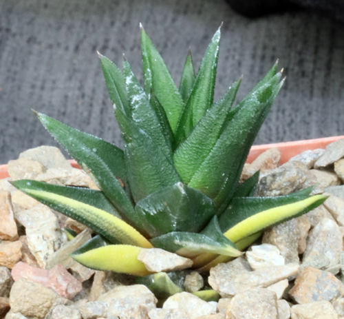 This cultivar is the reverted form of a highly sought-after variegate from Japan. As with other cultivars of this sort, the plain green version can throw the sought-after sports that are yellow-green. We’re holding our breath to see when/if this happens. These plants are rooted offsets in 4-inch pots.
