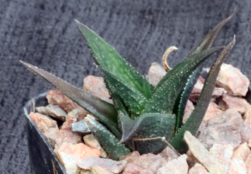This black-leaved species, common through the Eastern Cape Province of South Africa, forms small rosettes. Our plants are propagated from material originally collected near the Fish River, and these plants have the nice nested leaves combined with that chocolate brown color that makes this species so desirable. These plants are seedlings in 2-inch pots.