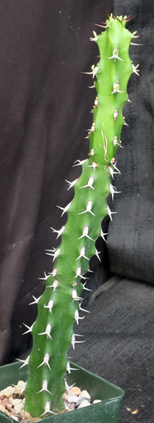 From Djibouti, with a very restricted distribution, this tree Euphorbia is related to Euphorbia qarad (Yemen) and E. robecchii. With its flat-topped crown bearing cylindrical, distinctively spined branches, this is quite a unique species. These plants are rooted cuttings in 4-inch pots.