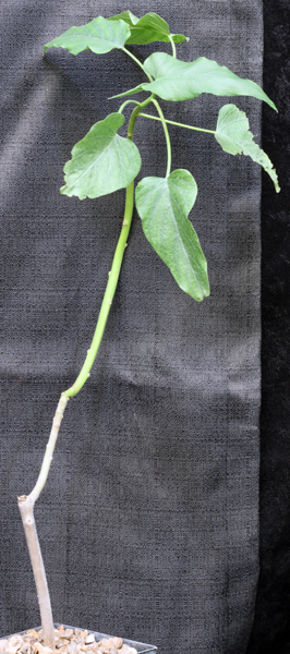 This arborescent species is a shrub of the southern United States and the New World tropics. It has a relatively gnarly trunk with branches that produce heart-shaped leaves at the tips. It produces large pink-purple flowers when mature. These plants are seedlings in 5-inch pots.