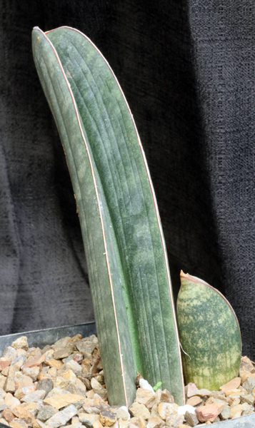 This species is from Zimbabwe. The mature leaves are the familiar broad, channeled brownish-green leaves with blunt tips that create the common name “baseball bat.” The leaves are particularly wider and stouter in this form. The plants are rooted offsets in one-gallon pots.