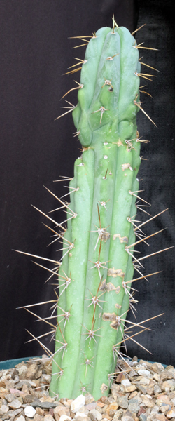 Trichocereus bridgesii is from Bolivia in the vicinity of La Paz. Its normal form is a short shrub with numerous branches. We think these plants flower white. This form has yellow spines that someone decided to compare to sunlight. These plants are rooted cuttings in 8-inch pots.
