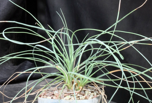 From Mexico, this species has grass-like leaves arising from a woody caudex that rapidly gets quite large. In Tucson, we grow this outside, where it is frost and drought resistant. We offer seedlings in 5-inch pots.