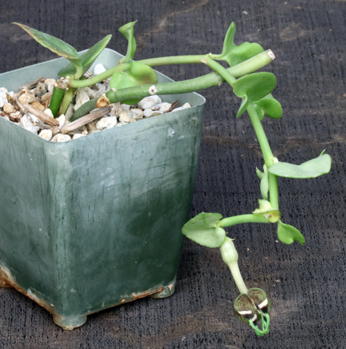 This species is from the Eastern Cape Province of South Africa. It has succulent leaves and stems, and the leaves have crenulate margins. This species makes an ideal hanging plant. The flowers are rather incredible and dominantly yellow in color. These plants are seedlings in 4-inch pots.