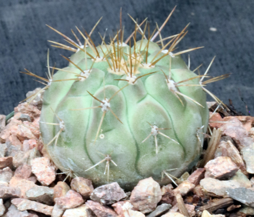 This is one of the largest of the Copiapoa. An inhabitant of coastal Chile, the epidermis turns white with age, at least theoretically. The name says it all, this plant is taxonomically confused but these are really nice plants to have in a cactus collection. The species has relatively long spines and has considerable wool around the apex. This species cannot take frost. These plants are seedlings in 5-inch pots.