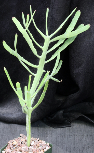 This beautiful tree Euphorbia is from Madagascar. An iconic element of the landscape, this tree has many stout branches arising from a central trunk. The stems of ssp. ambatofinandranae are typically blunt, not spiny, and the tree is much shorter. These plants are seedlings in 5-inch pots.