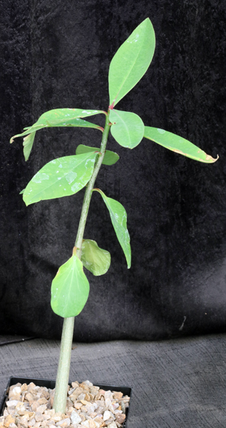 From central Mexico, this is an unusual tree Euphorbia with peeling orange-bronze bark much like members of the genera Commiphora from Africa and Bursera from North America. The cyathia are light yellow in color. These plants are seedlings in 5-inch pots.