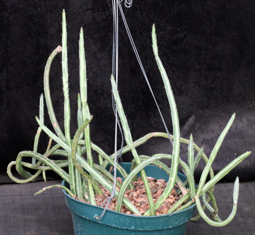We’ve reverted to the genus Kleinia for plants in this group with no ray flowers. As the name implies, the foliage looks somewhat like a Stapelia, but this Kleinia has nice orange-red flowers that make it worthwhile in most collections. We grow this species outdoors under shrubs in Tucson. These plants are rooted cuttings in 8-inch pots.
