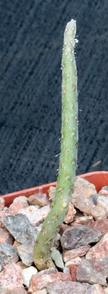 This tuberous cactus is from Argentina, extending into Bolivia. It produces inconspicuous, wand-like stems with spines generally appressed against the stem. The flowers are yellow to brown in color. These plants are rooted cuttings in 4-inch pots.