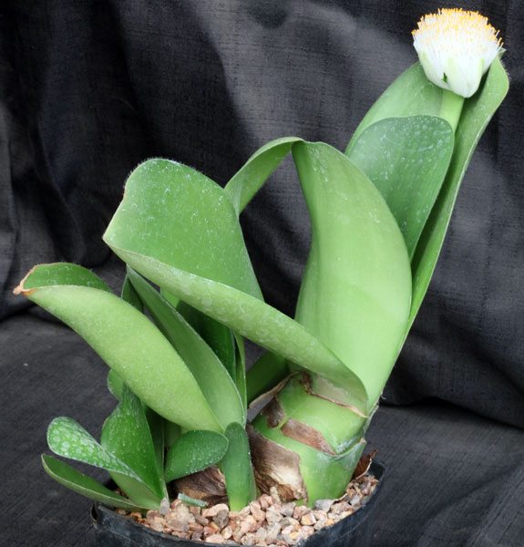 This species came to us as Rauhia peruviana, and a nice customer told us it likely was this species instead. It is a winter-growing bulb putting out two-three leaves from a subterranean bulb, and the leaves are a dull medium green with hairs on the margins. It occurs over a wide coastal range from the Eastern Cape Province of South Africa to Kwa-Zulu Natala. The flowers are a spectacular if compact umbel of white flowers with yellow filaments. These plants are rooted offsets in one-gallon pots.