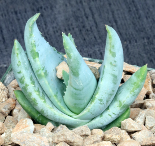From the Northern and Western Cape Provinces of South Africa, this is a relatively small species that grows on open plains. The leaves are blue-gray, have smooth surfaces, and lack marginal teeth. Variety dumoulinii is the dwarf form found in the vicinity of the Richtersveld. The flowers are relatively large and bright red, which is one the reasons collectors desire this species. These plants are seedlings in 4-inch pots.