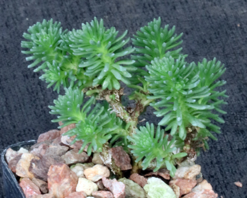From the mountains of northern Algeria, this species looks like a small tree with linear leaves. Those leaves are spirally arranged and sessile, and the arrangement resembles a small bottle brush. The flowers are small and yellow. This is an ideal candidate for bonsai. These plants are rooted cuttings in 2-inch pots.