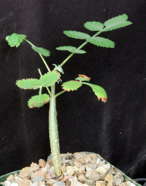From the southern Mexican states of Oaxaca and Puebla, this is a tree with greyish bark on the trunk. The leaves are pinnate, green, and heavily veined, and they are oblanceolate and minutely tomentose. These plants are seedlings in 4-inch pots.