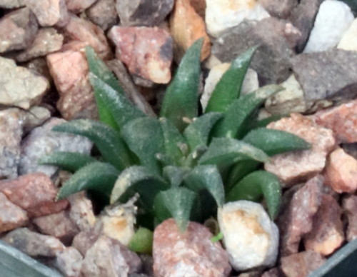 This is one of the tiniest Haworthias. Ours offset relatively rapidly, forming nice little clumps. Ours are from several sources, but all plants originally came from the type locality near Mossel Bay, South Africa (GM 284). These plants are rooted offsets in 3-inch pots.
