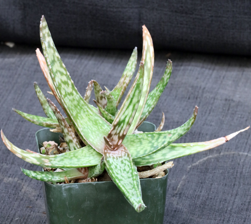 This small, clumping Aloe has some of the nicest leaf variegation within the genus. Our plants are from the late Werner Rauh from material collected at the type locality at Cape Manambatu, Madagascar. For reasons that are not readily understandable, this rapidly growing species is a CITES level 1 species and is not suitable for export. However, it is a wonderful Aloe for collectors from the US. These plants are rooted offsets in 4-inch pots.