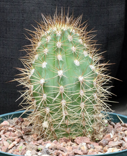 This large tree-like cactus is from Bolivia and Peru, and some call this Echinopsis atacamensis. Regardless of whose taxonomy you accept, these plants are large and slow-growing with dark green stems, 6-8 ribs, and many yellow spines. Should you grow it long enough, it will produce large reddish-white flowers. These plants are seedlings in 8-inch pots.