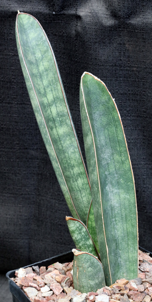 This species is from Zimbabwe. The mature leaves are the familiar broad, channeled brownish-green leaves with blunt tips that create the common name “baseball bat.” The plants are rooted offsets in one-gallon pots.