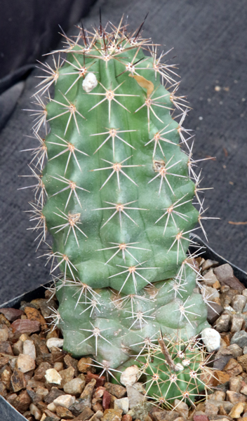 Supposedly synonymous with Echinocereus coccineus, this species is widely distributed in the southwestern US from Arizona to Colorado and over into Texas. Very similar to Echinocereus triglochidiatus, it has short cylindrical green stems with sparse yellow-white spines. The flowers are red-orange and somewhat campanulate. These plants are seedlings in one-gallon pots.