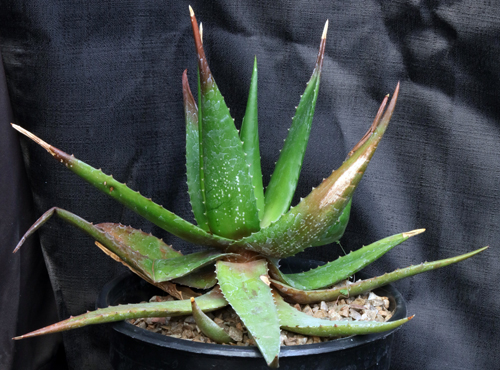 This offsetting species is from central Tanzania. The leaves are immaculate, brown and quite distinctive most of the year but turning greenish brown when growing in the summer. The flowers are red and held on a short inflorescence. These plants are seedlings in 2-gallon pots.