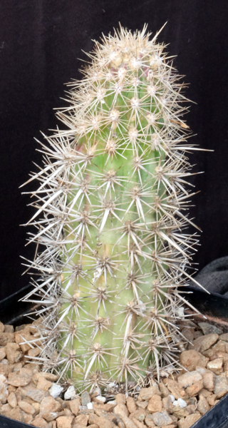 This species once occupied large areas of the Llano de Magdalena in Baja California Sur, Mexico, but agricultural development has eliminated much of it in the wild. As the common name implies, this species creeps across the ground. The stems are extremely spiny and make this plant rather unique. We offer seedlings of this species in one-gallon pots.