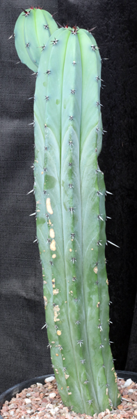 This species is widespread in north-central Mexico with its distribution centered on Tamaulipas. Known in the US as blue Mexican fencepost, this species characteristically has blue-green stems with small black spines. The flowers are small and greenish-white and are produced in the summer. These plants suffer damage at temperatures below about 22 F and are rooted cuttings in 3-gallon pots.