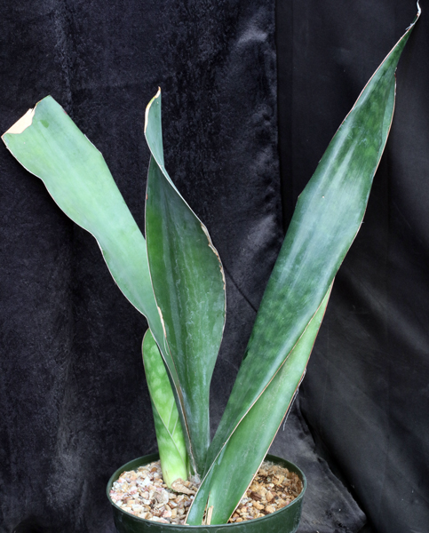 From Kenya, Tanzania, and Malawi, this species has dark green leaves with prominent dark longitudinal lines. These plants are propagated from material originally collected in southeastern Kenya (WY 1032-2). The leaves are obovate and of intermediate length for this genus. The flowers are light purple to white. These plants are rooted offsets in 8-inch pots.