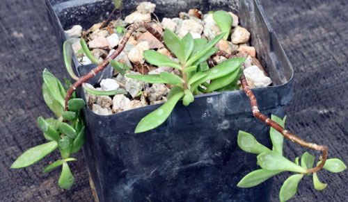 This little species, from Coahuila, Mexico, forms tuberous roots that are adventitious. The stems are weak, creating more of a ground cover than an upright shrub. The leaves are fleshy and quite attractive, and the flowers are a rich pink color. These plants are seedlings in 4-inch pots.