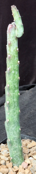 Monvillea spegazzinii is a shrubby cactus from Brazil, Argentina, Bolivia, and Paraguay that has a similar form and habitat to the night-blooming cereus (Peniocereus greggii). The stems are less than an inch across and are mottled in purple and green. The flowers are white and 3-4 inches in diameter. These plants frequently produce monstrose crests, although what we offer are rooted cuttings of straight stemmed branches. These rooted cuttings are in one-gallon pots.