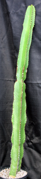 This species is a large tree in its habitat through the southwestern Arabian Peninsula. The stems are a bright green with a horny spine shield with short, black spines. These plants are rooted cuttings in 3-gallon pots.