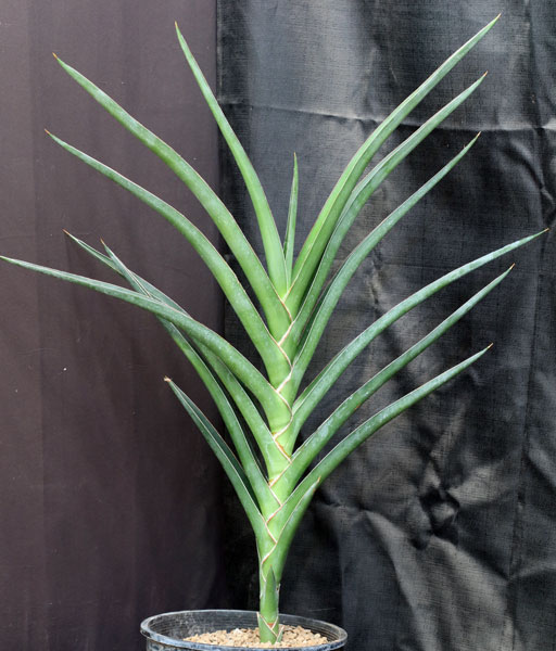 Sansevieria powellii is an arborescent species from East Africa, especially Kenya, where it occurs inland from the dense coastal plant assemblages. These plants are propagated from material originally collected by Horst Pfennig. This form tends to be distichous. These plants are rooted offsets in 2-gallon pots.
